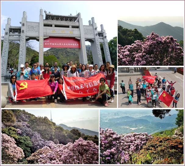 4月3日,教育技术与信息中心分工会本着“开开心心生活、认认真真工作”的宗旨,组织部门教职员工前往梧桐山观赏毛棉杜鹃盛放景观。 教职员工们聚集于海拔约400米的凤凰台,沿登山道前行来到万花屏,毛棉杜鹃全面进入盛花期,花海蔚为壮观。