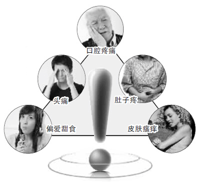 头疼、怪梦、吃甜、牙齿出血等